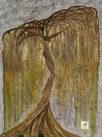 From Irinia's blog: "The tree is a symbol of energy. It connects three levels of nature the Underworld, the Earth's surface, and the Heavens. It resembles human life cycle: Birth, Life and Death. Human and Nature are interdependent and I see it as an essence of my art."